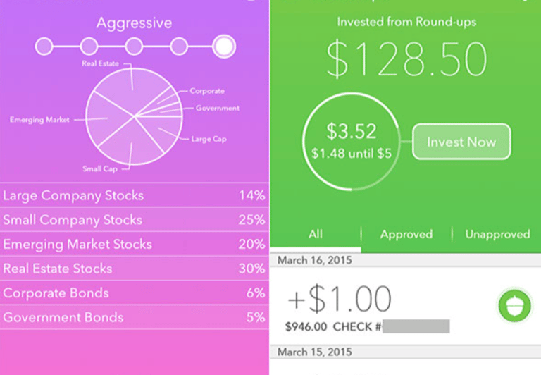Acorns arrondit vos achats à l’euro supérieur et investit automatiquement la petite différence dans un portefeuille diversifié.